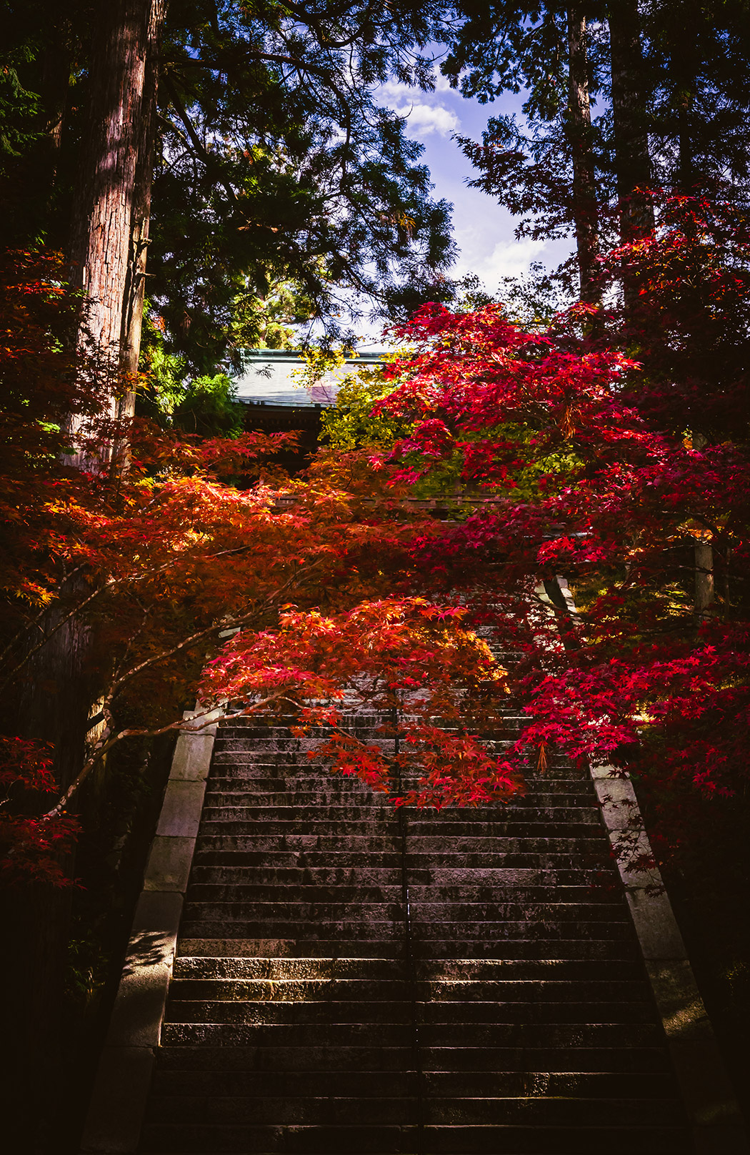 天台大師智顗の教えを極めたいと願い、桓武天皇の援助を受けて還学生(げんがくしょう)として唐に渡りました。中国天台山に赴き、修禅寺の道邃(どうずい)・仏隴寺の行満に天台教学を学び、典籍の書写をします。その後禅林寺の翛然(しゅくねん)より禅の教えを受けられ、帰国前には越州龍興寺で順暁阿闍梨から密教の伝法を受けられます。こうして、円密一致といわれる日本天台宗の基礎をつくられたのです。