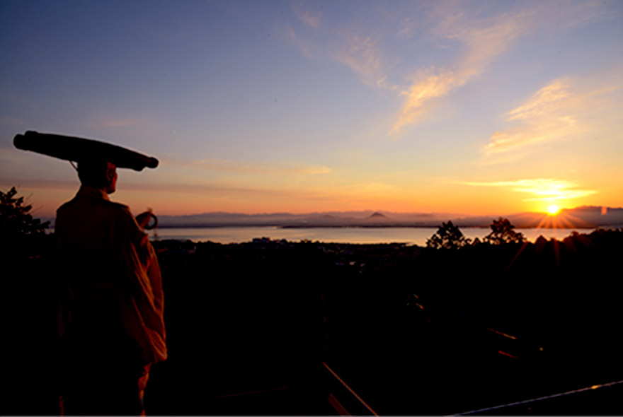 無動寺回峰道のコース6年目は、これまでの行程に京都の赤山禅院への往復が加わり、1日十五里の行程を100日。7年目は200日を巡ります。前半の100日間は“京都大廻り”と呼ばれ、比叡山山中の他、赤山禅院から京都市内を巡礼し、全行程は二十一里にもおよびます。最後の100日間は、もとどおり比叡山山中七里半をめぐり満行となるものです。