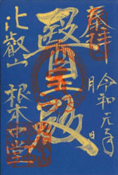 延暦寺では各仏様の縁日にあわせた紺紙金字の特別御朱印を授与しています。