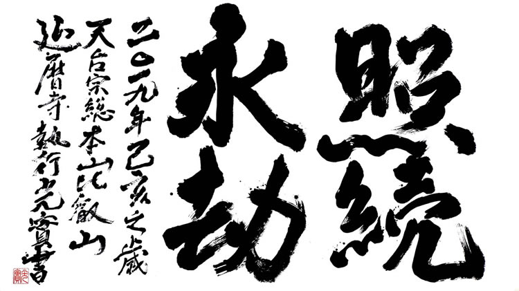 A new era will begin this year. From the Heian Era to Heisei, Dengyo Daishi Saicho’s Teaching and Spirit continues to light up and guide the world, as has his “Eternal Dharma Lamp” which has been kept lit for over 1,200 years. The Tendai Denomination, with its head temple Enryakuji, will celebrate the 50th anniversary of the “Light Up Your Corner” movement, a movement that translates Dengyo Daishi Saicho’s teaching into action around the world. Surely these are the lights that guide your family and workplace. In this new era opening, let’s make the family, workplace and community bright with happiness by lighting up the world through Dengyo Daishi’s Dharma teachings. New Year’s Day, Heisei 31, in the sixth order of the sexagenarian cycle of the Year of the Boar.