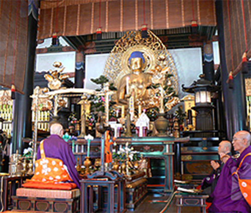 毎月15日、春秋彼岸会(お中日)ならびにお盆の施餓鬼会(8月16日)は天台座主大導師による総回向法要を執り行いますのでぜひお参りください。