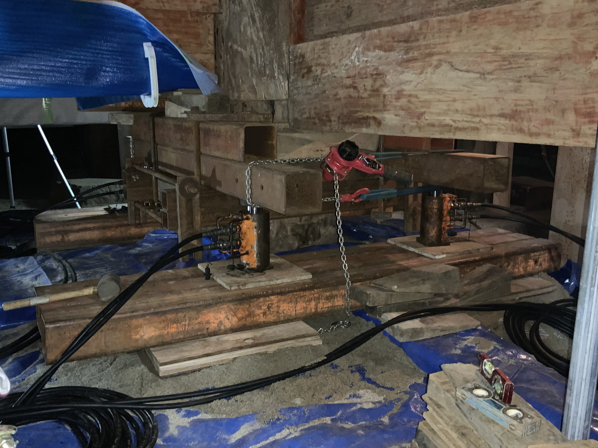 数か所にジャッキをかけ