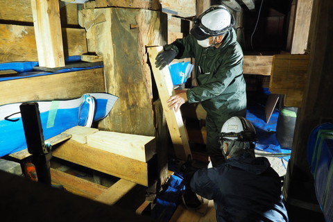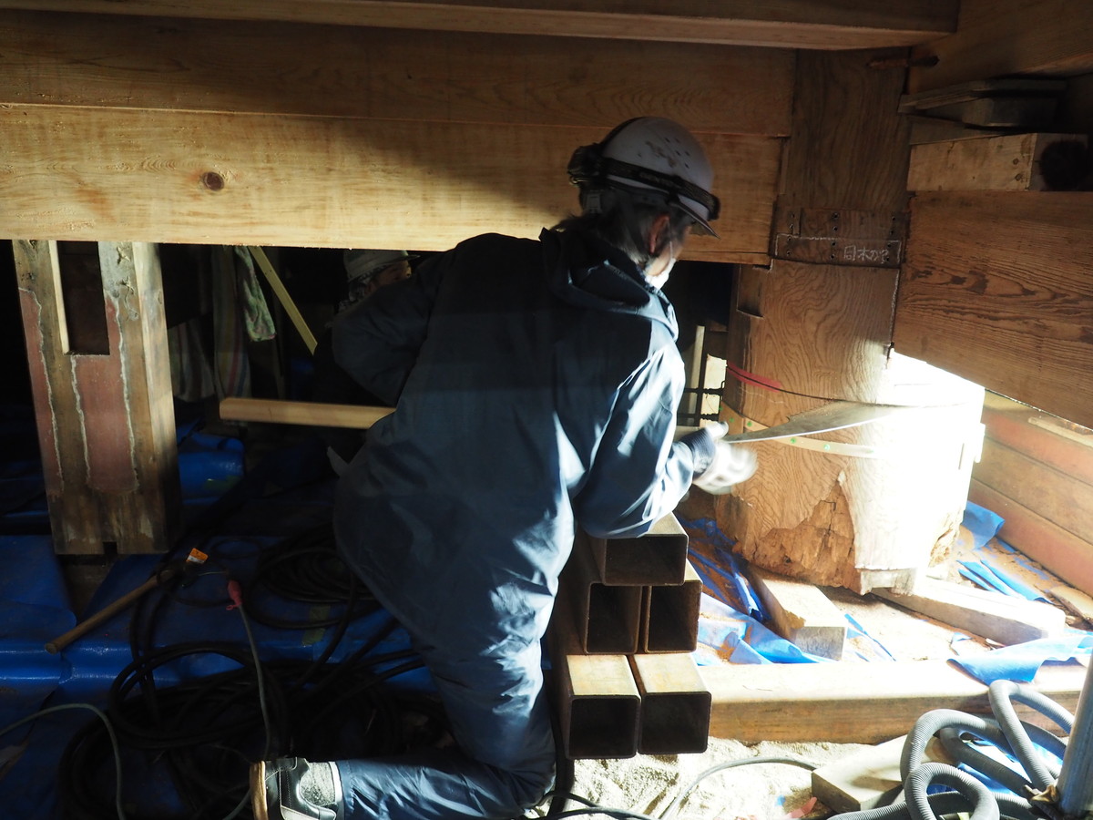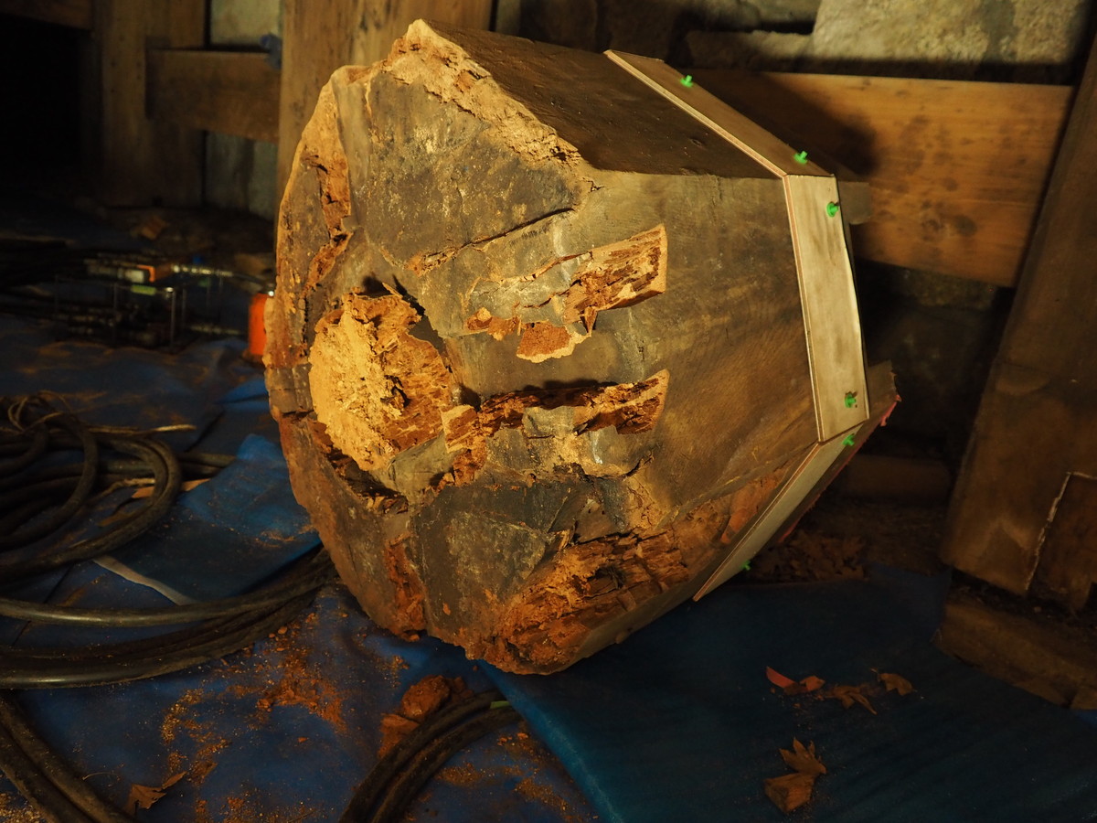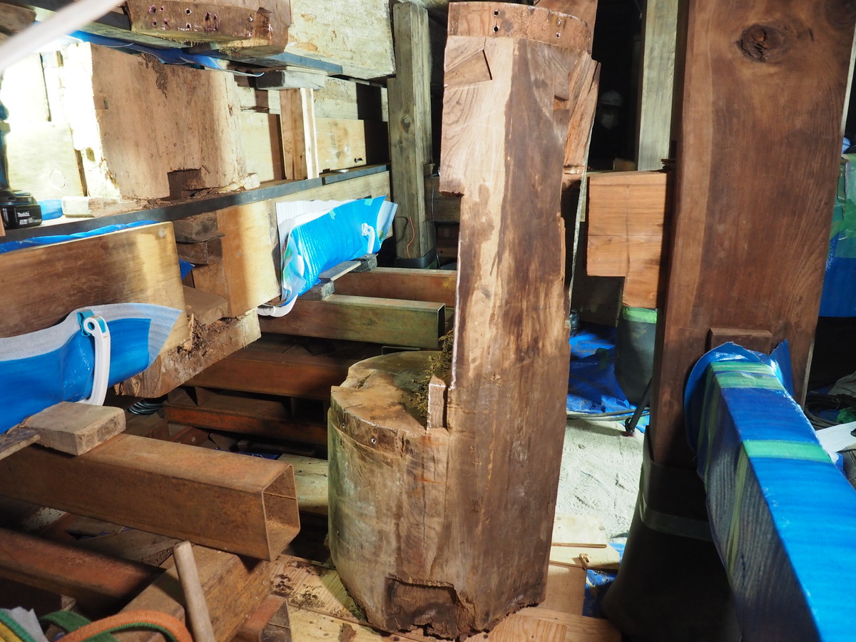 今回の大改修では柱足元が腐朽している2本の柱の根継を行います。