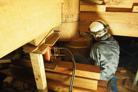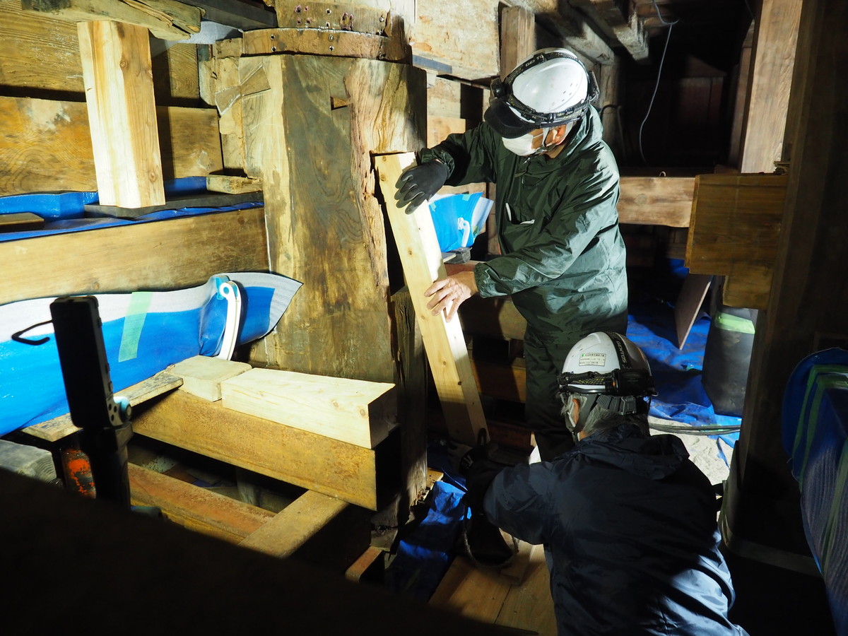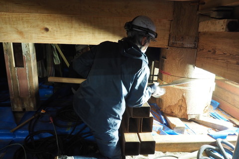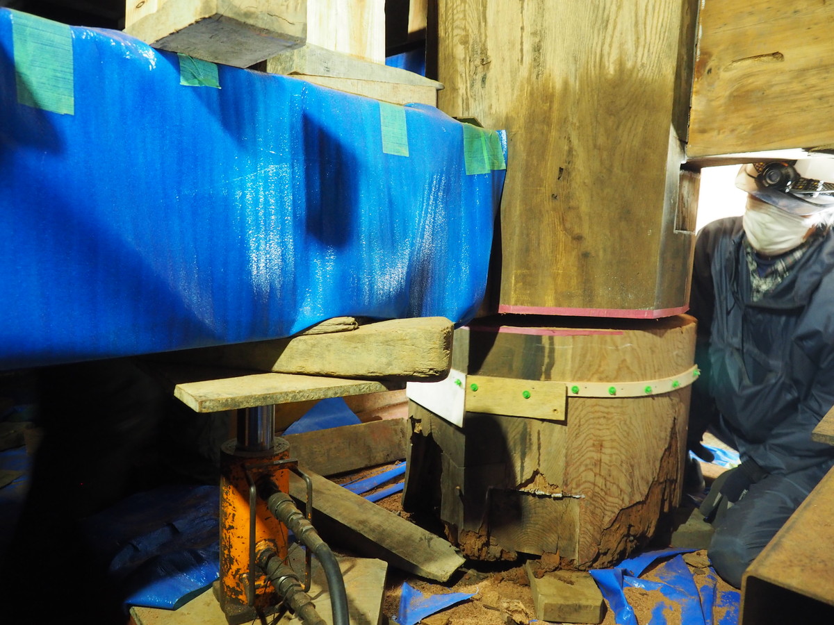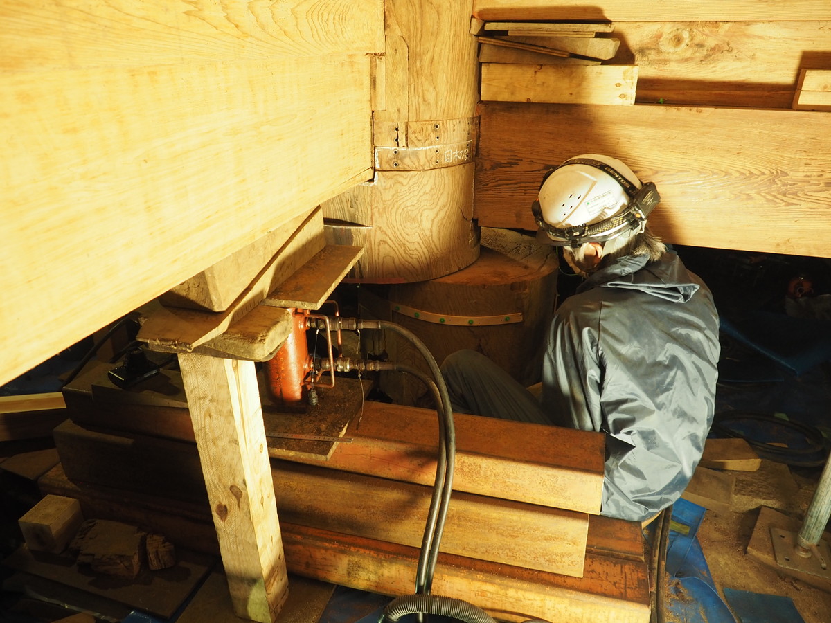 今回の大改修では柱足元が腐朽している2本の柱の根継を行います。
