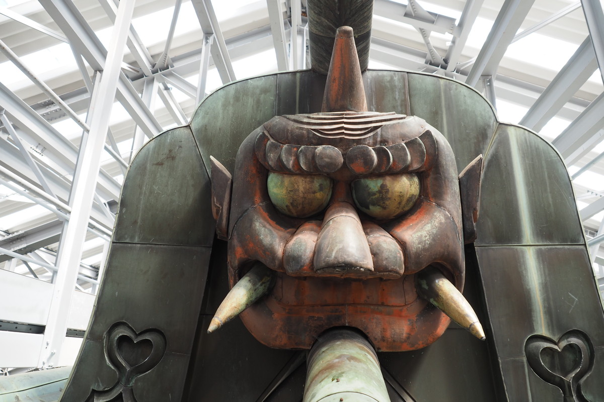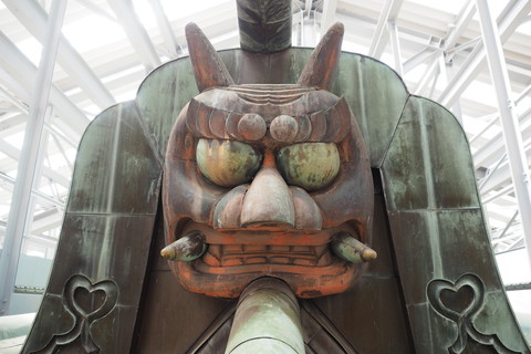 表面は緑青がふいていますが裏面は銅の色が残っています。根本中堂の屋根には厚さ約0.5mmの銅板が使用されています。