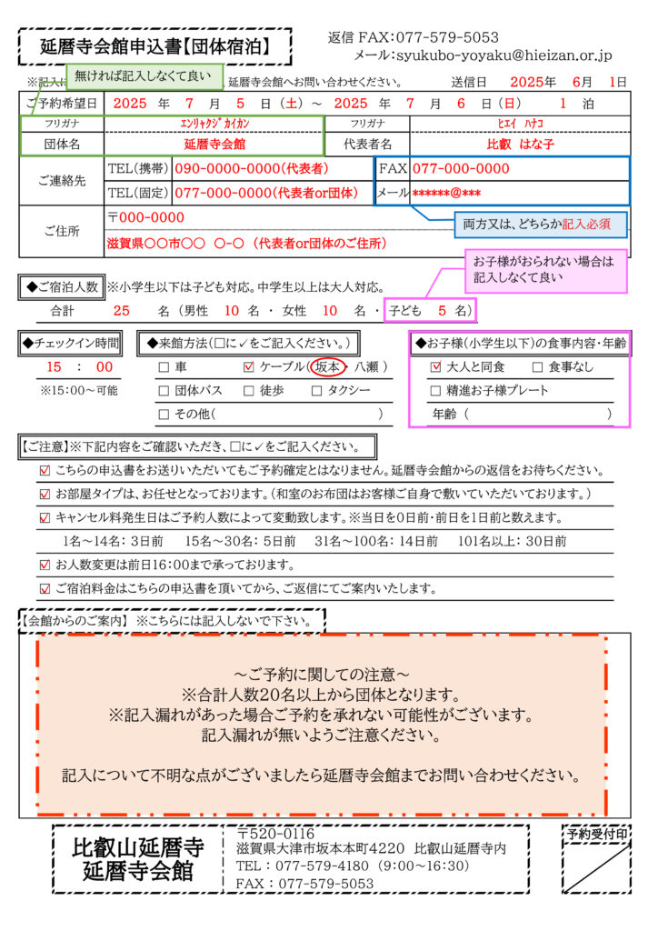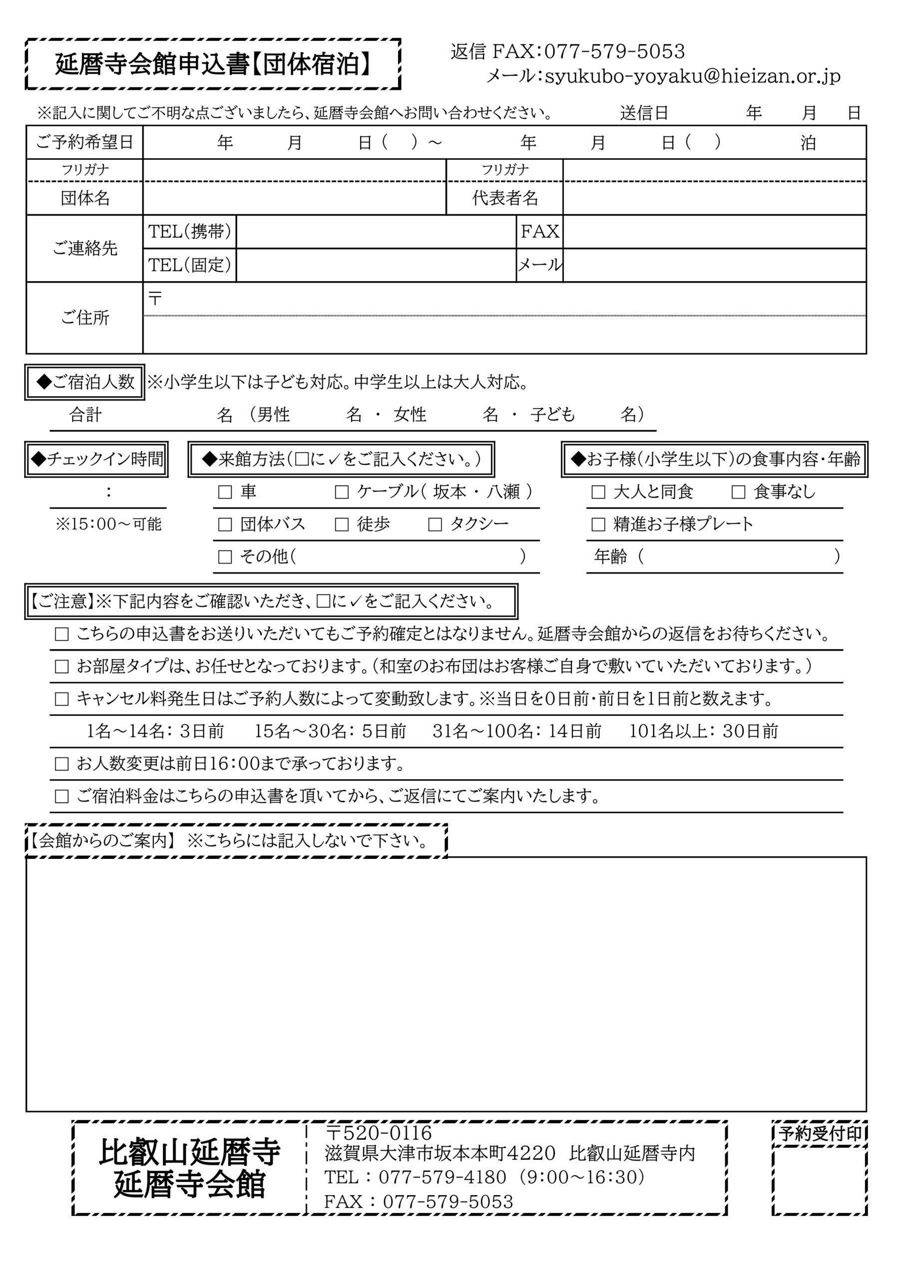 ※メールでお送りいただく場合syukubo-yoyaku@hieizan.or.jpからの返信メールが受信できるアドレスでお送りください。