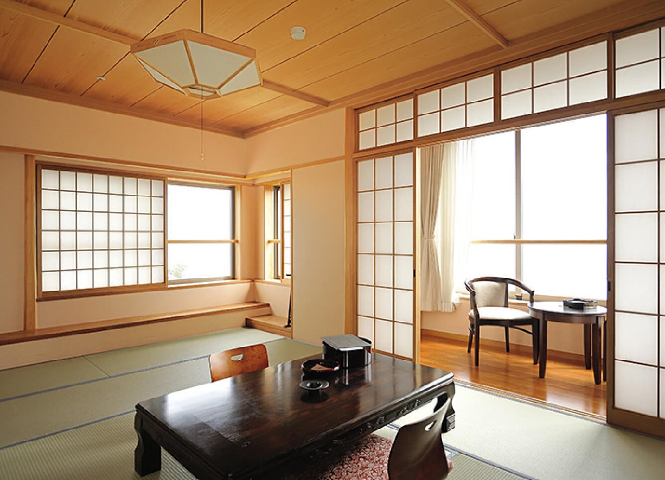 眺望清逸の特別和洋室のお部屋からは琵琶湖を一望でき、こころよりおくつろぎいただけます。広々としたお部屋にて、比叡山延暦寺ご参拝のひとときをお過ごしください。