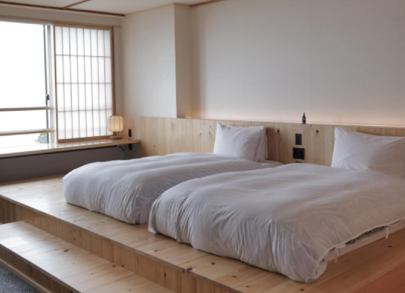 延暦寺会館で7部屋しかない新設リトリートルームのご案内です。 リトリートとは“非日常的な場所で自身と向き合う”ということ。 お部屋空間にあるのは琵琶湖を望むカウンターとおやすみ用のベッドのみ… 延暦寺境内に有るお部屋で日常から離れ “リトリート” を体験しませんか?シャワールーム、2ヵ所の洗面台付。