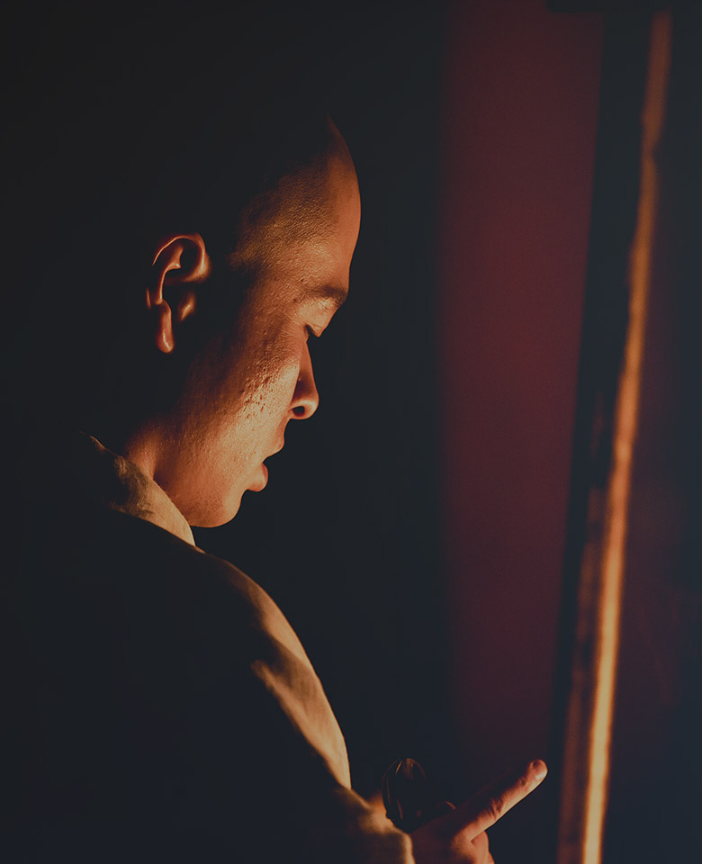 天台大師智顗の教えを極めたいと願い、桓武天皇の援助を受けて還学生(げんがくしょう)として唐に渡りました。中国天台山に赴き、修禅寺の道邃(どうずい)・仏隴寺の行満に天台教学を学び、典籍の書写をします。その後禅林寺の翛然(しゅくねん)より禅の教えを受けられ、帰国前には越州龍興寺で順暁阿闍梨から密教の伝法を受けられます。こうして、円密一致といわれる日本天台宗の基礎をつくられたのです。