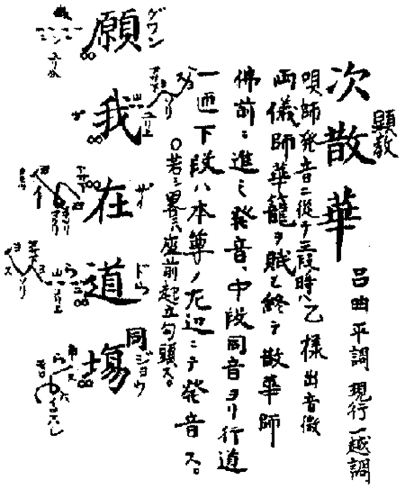 道場に本尊・聖衆を招請し、香を献じ華を散じて供養するために唱えられる曲で、三段からなる。
