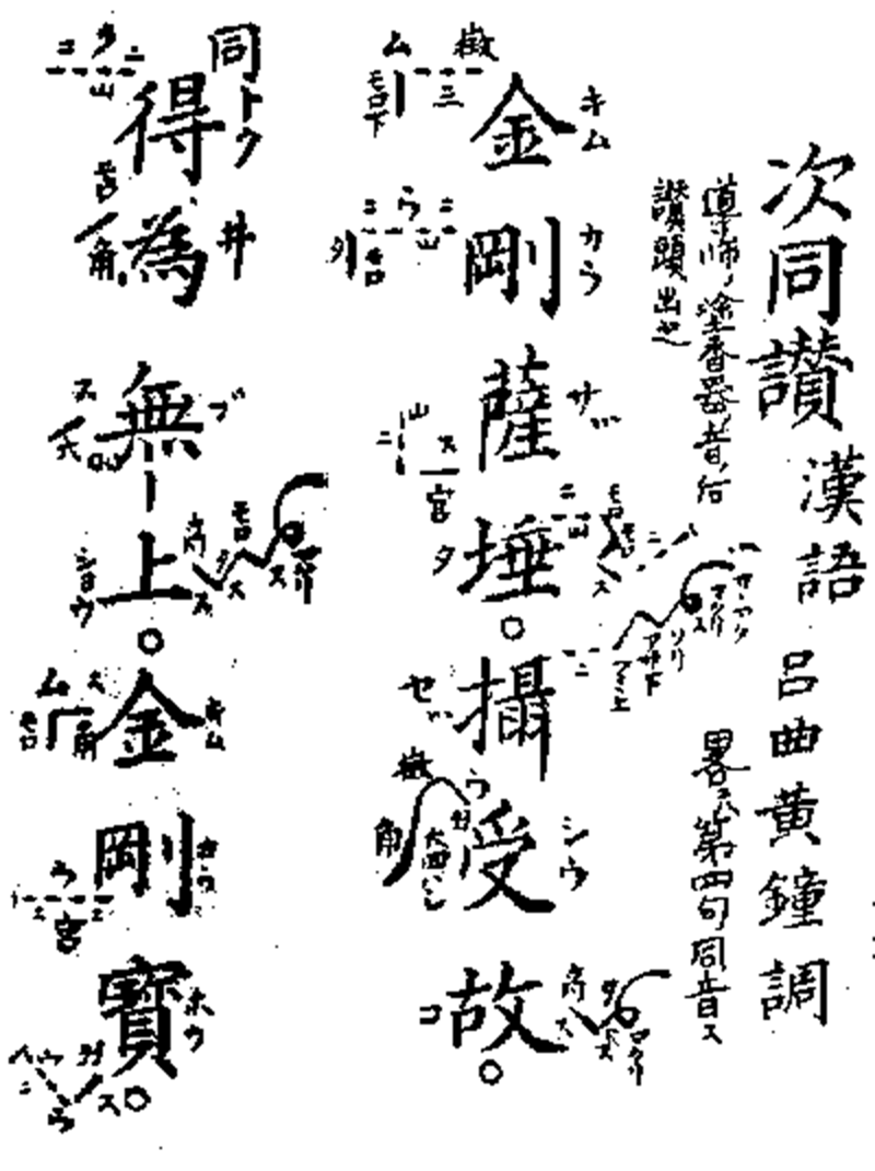 梵語讃(ぼんごさん)とはサンスクリット音を漢字で表記した声明曲である。内容は仏の四つの知恵を讃える詩で、鏡のようにあらゆるものを差別なく現し出す智(大円境智)、自他すべてのものが平等であることを証する智(平等性智)、平等の中におのおのの特性があることを証する智(妙観察智)、あらゆるものをその完成に導く智(成所作智)の四つが唱えられる。