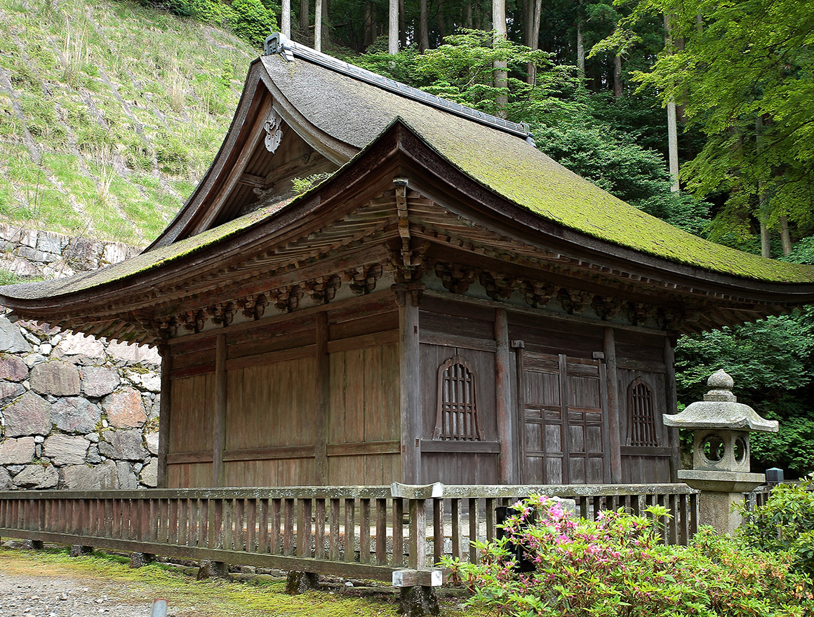 薬師瑠璃光如来を本尊とする瑠璃堂は、信長の焼き討ちを逃れた山内唯一の建物で、室町後期の建築といわれています。