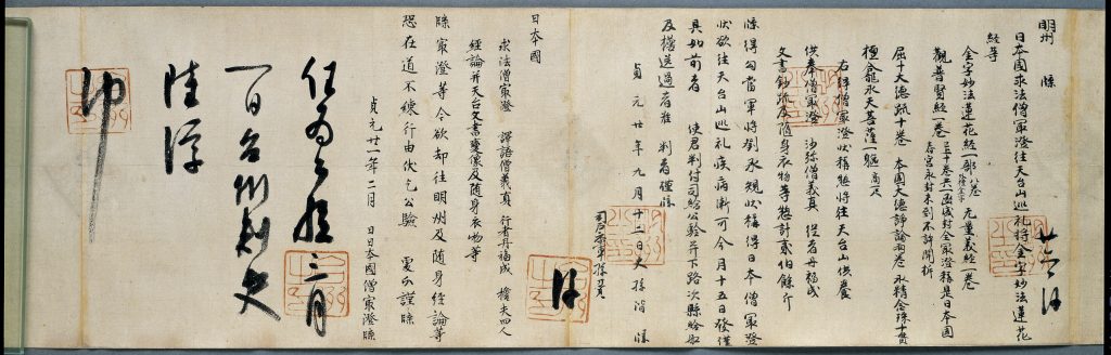 国宝 伝教大師入唐牒 一巻 唐・貞元20~21年(804~805)