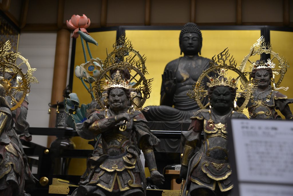 本堂根本中堂には、御本尊薬師如来の脇侍として十二神将像が祀られています。