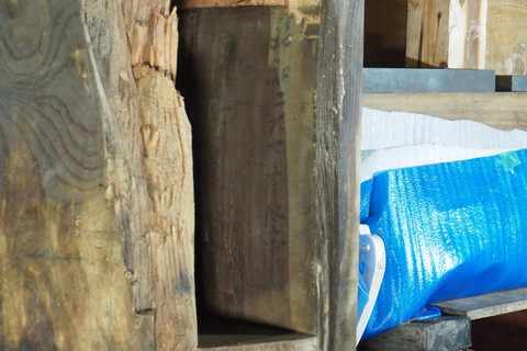 1本は南側車寄せ付近の柱を根継します。今回取り外した部材には昭和27年の墨書きがあり昭和の大修理でも根継が行われていたことがわかります。