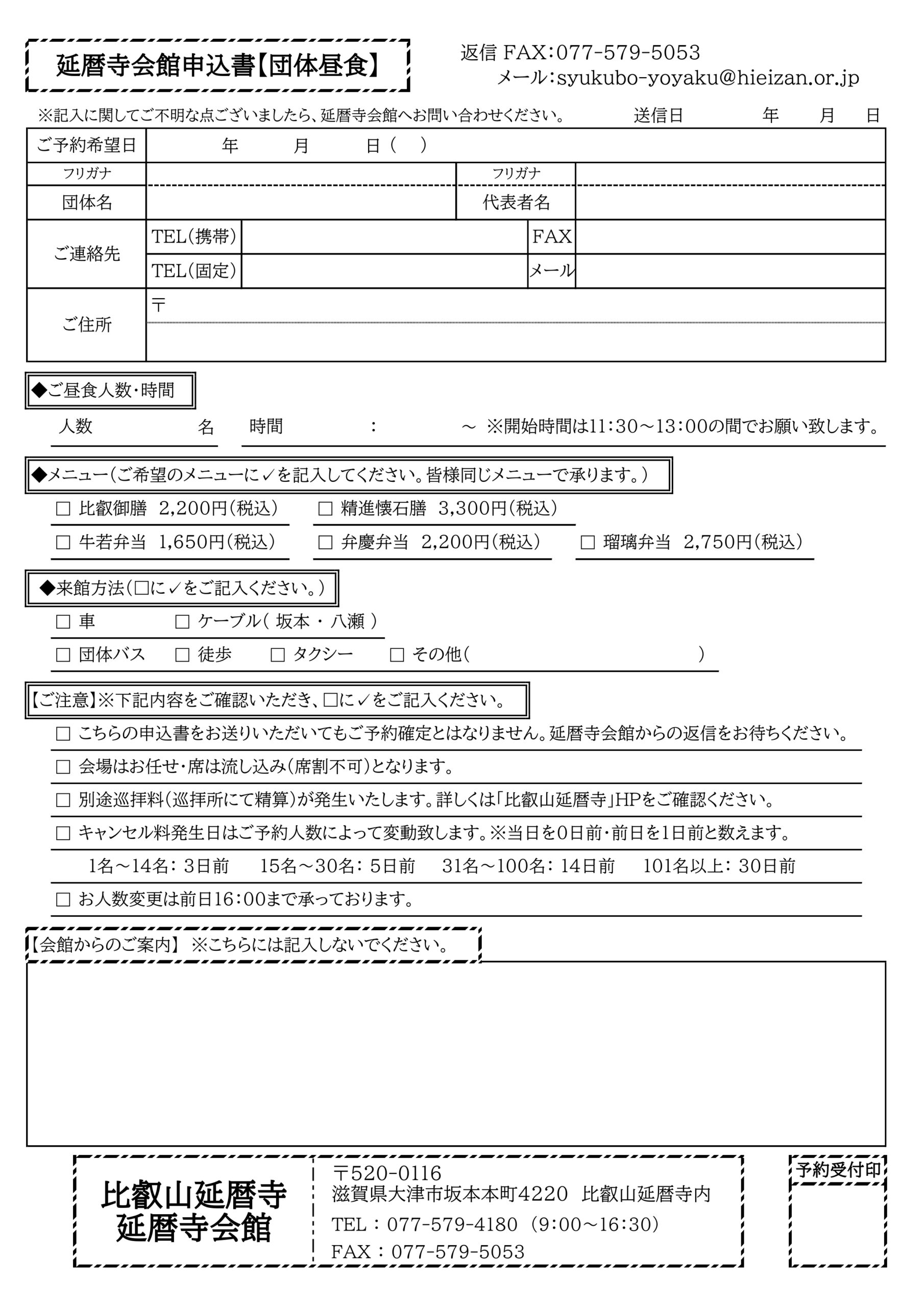 ※メールでお送りいただく場合syukubo-yoyaku@hieizan.or.jpからの返信メールが受信できるアドレスでお送りください。